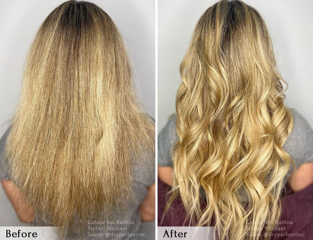 Coloured by Katlina and styled by Michael, this method using the Fantsy Hair Tape-in exstensions in M6/60 Blonde Ombre