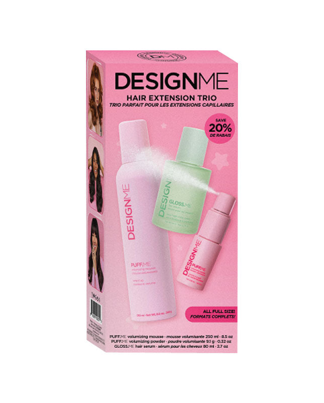 Safely style and care for your hair extensions with this limited-edition kit! Featuring 3 products selected by extension pros, this trio offers everything you need to boost your extensions’ volume and shine, while keeping them as stunning as the day you got them. GLOSS.ME hair serum (80ml): Perfect for smoothing & softening dry hair extensions. This weightless serum instantly hydrates, boosts shine and tames frizz and flyaways. PUFF.ME volumizing mousse (250ml): A non-drying, alcohol-free mousse that creates volume, body and long-lasting hold, without any crunch. Features heat protection for safely styling your extensions. PUFF.ME volumizing powder (9g): A styling powder that instantly plumps and volumizes hair at the roots, creating the appearance of thicker, fuller looking hair.