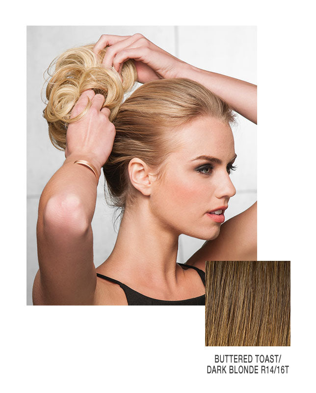 This dynamic duo can be worn separately or together to create perfect up-dos, twisted rolls, high chignons and low chignons in no time. Just wrap these patented elastic-band pieces around a ponytail or bun to maximize your style quotient. Made with Tru2Life® heat-friendly synthetic hair that can be flat-ironed, curled or blown out. (See packaging insert for complete directions.) Patent #6,513,535. Hair length: Style-A-Do – 6” | Mini-Do – 7 ½”.